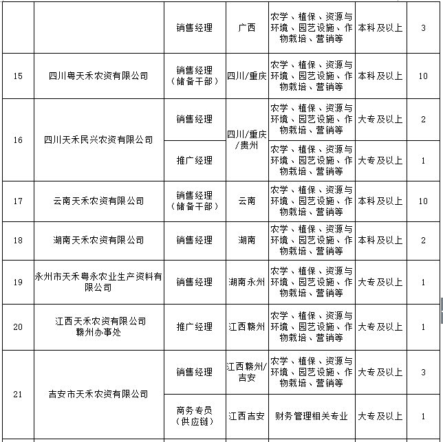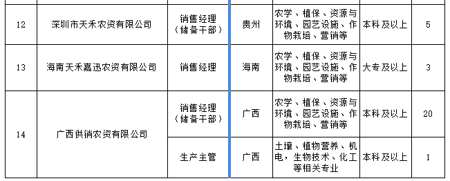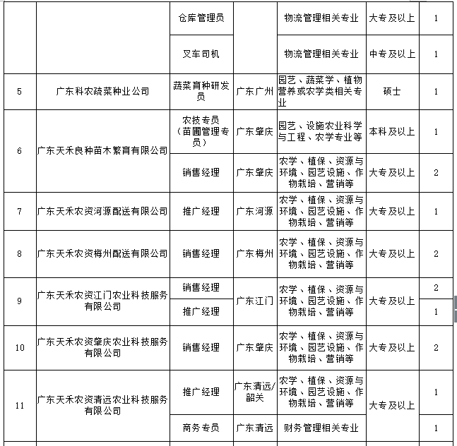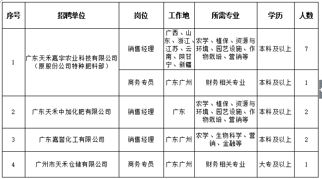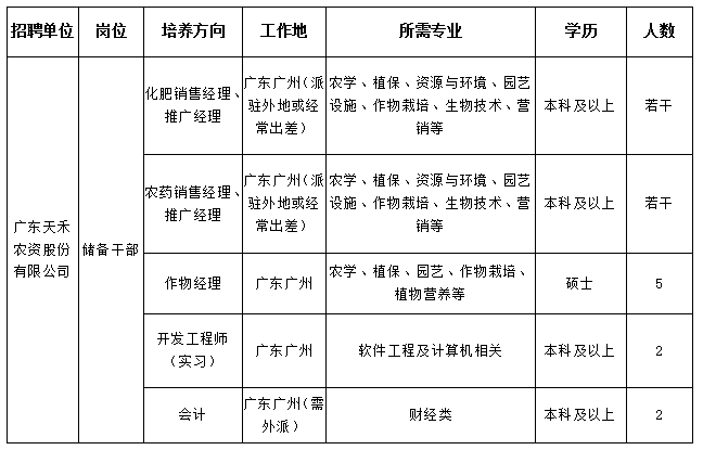 广东天禾农资股份有限公司2018届校园招聘计划