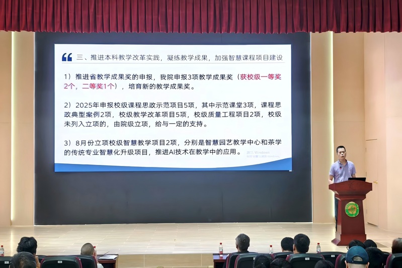 9月4日下午,园艺学院在224报告厅召开2025年秋季学期本科教学工作计划会议。全体教职员工参加会议,会议由教学副院长陈长明主持。