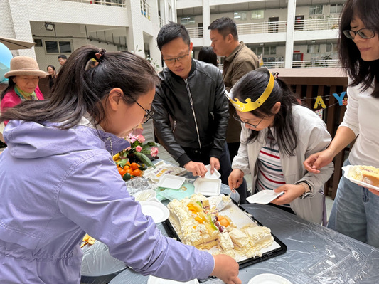 在温馨欢快的《生日快乐》歌声中,王惠聪老师作为本次生日会的代表,与其他生日教师一同走上前,共同切开象征着幸福与甜蜜的蛋糕。这一温馨的瞬间,不仅是对过去岁月的美好回顾,更饱含着对未来日子的殷切期许与美好祝愿。