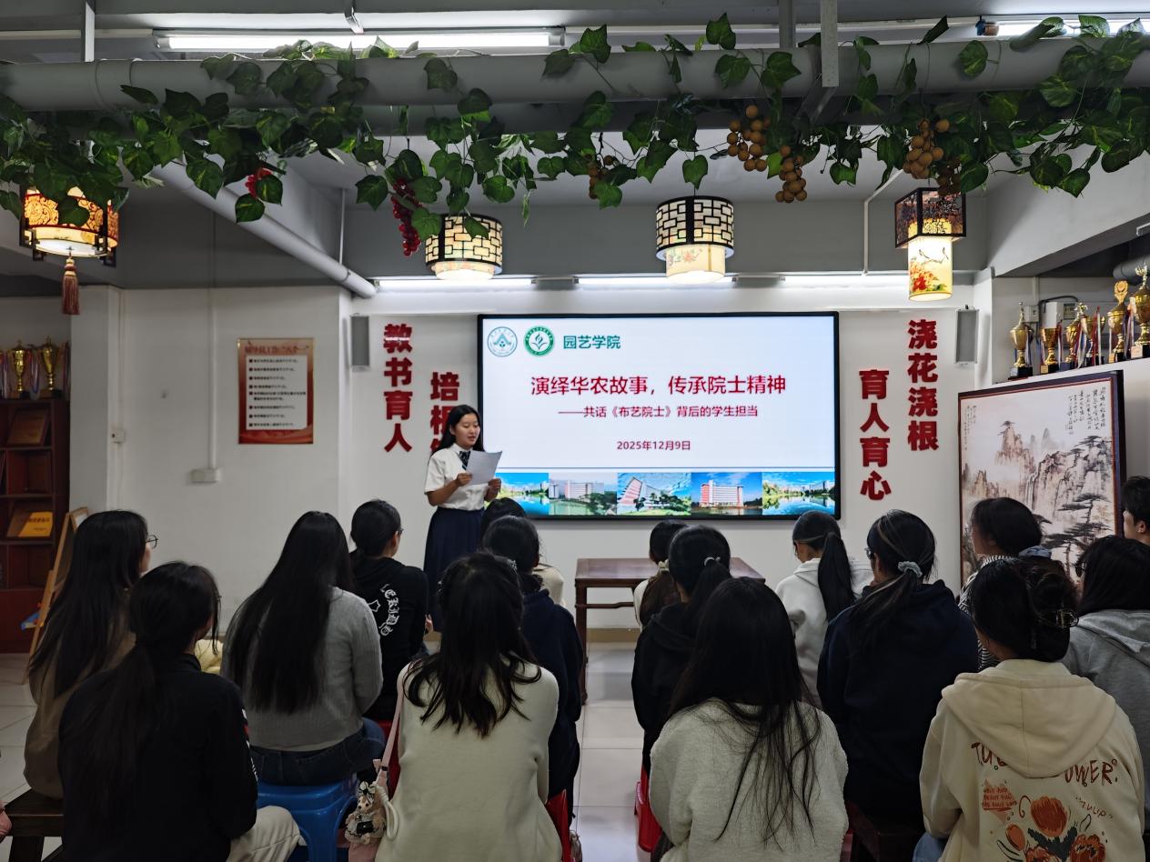 园艺学院在思创园学生社区举办《布衣院士》舞台剧参演同学分享会。活动通过剧目展映、参与者分享与互动讨论等形式,深入挖掘卢永根院士“一心向党、一生爱国、一身正气、一世勤俭”的崇高精神,激发青年学子的使命担当。