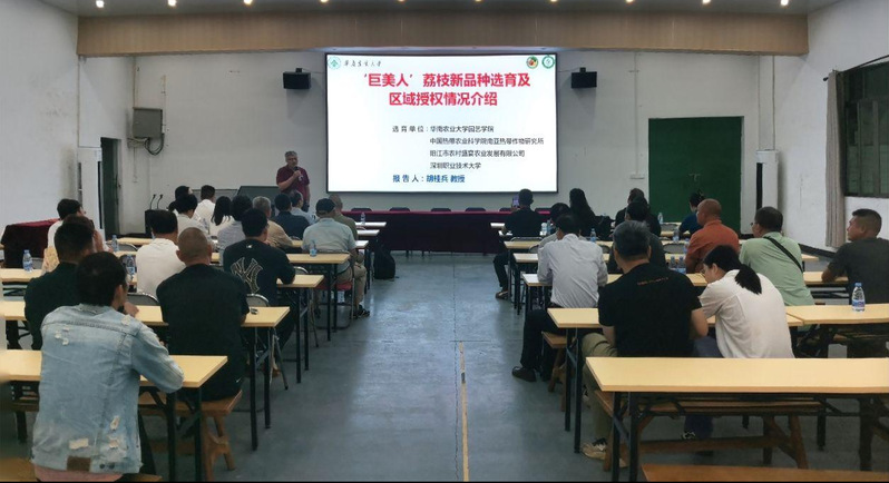 广州知农知识产权有限公司张子珮律师以《巨美人荔枝品种权保护思路》、植物保护学院姜子德教授以《巨美人荔枝病虫害绿色防控技术》、阳江市农村盛宴农业发展有限公司正高级工程师补建华以《巨美人荔枝安全高效栽培技术》分别作了相关研究的报告。